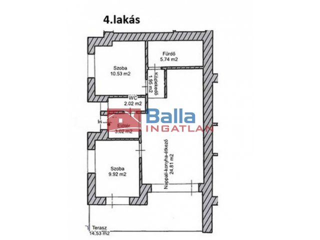 Egyéb tulajdonságok: tehermentes, terasz (15 m²), külön wc, zárt autóbeálló
